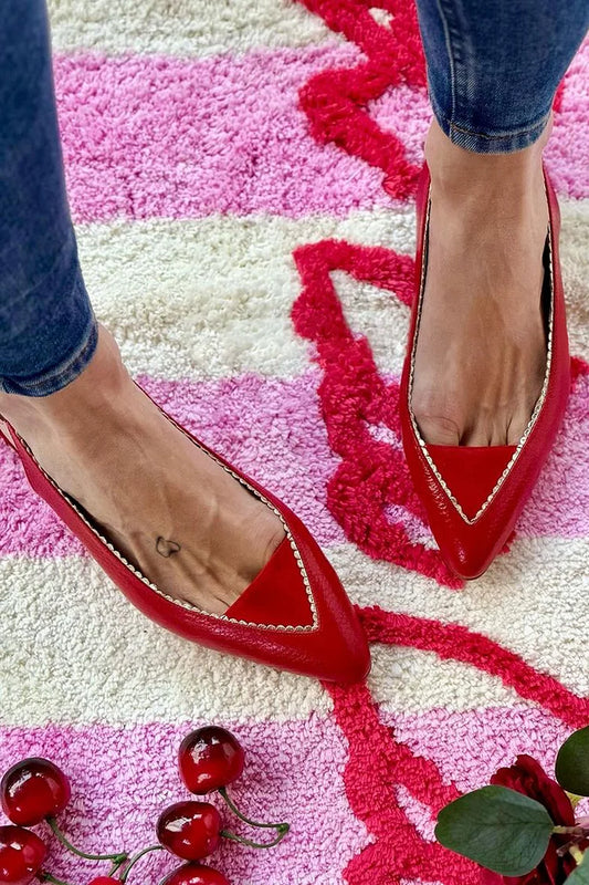 Ballerine rosse con punta affilata e cinturino posteriore con finiture a contrasto