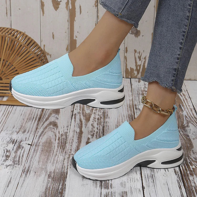 Scarpe casual da ginnastica con zeppa, punta rotonda, in maglia tinta unita