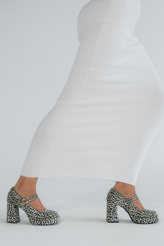 Scarpe con tacco largo, punta quadrata, stampa leopardata, fibbia a due cinturini, bianche [Pre-ordine]