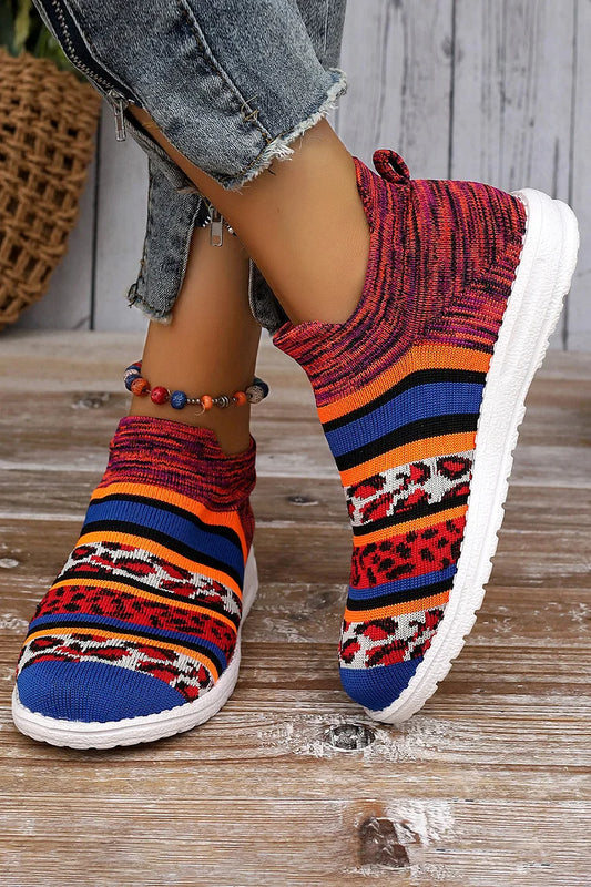 Ballerine traspiranti con punta affilata e lavorazione a maglia colorblock