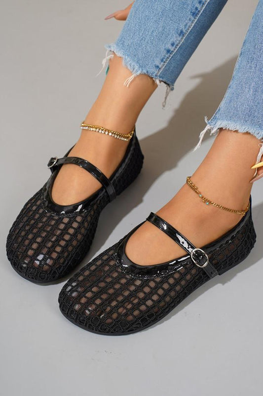 Scarpe basse con punta tonda, cinturino sul collo del piede in rete traforata, tinta unita