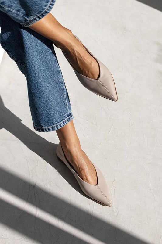 Ballerine beige con cinturino incrociato, punta affilata e cinturino posteriore [Pre-ordine]