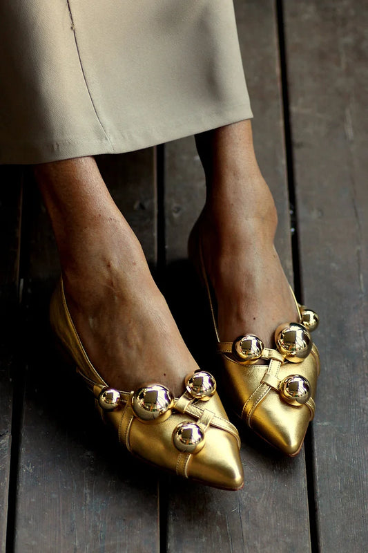 Scarpe basse dorate con punta affilata e rivetti rotondi lucidi metallici [Pre-ordine]