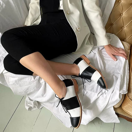 Oxfords casual nere con punta rotonda e lacci colorblock [Pre-ordine]
