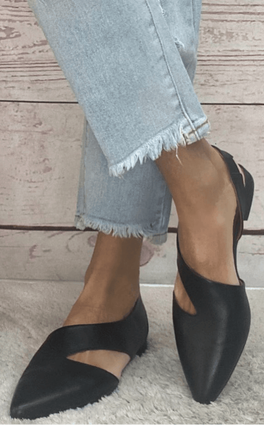Ballerine a punta in similpelle con cinturini incrociati [Pre-ordine]
