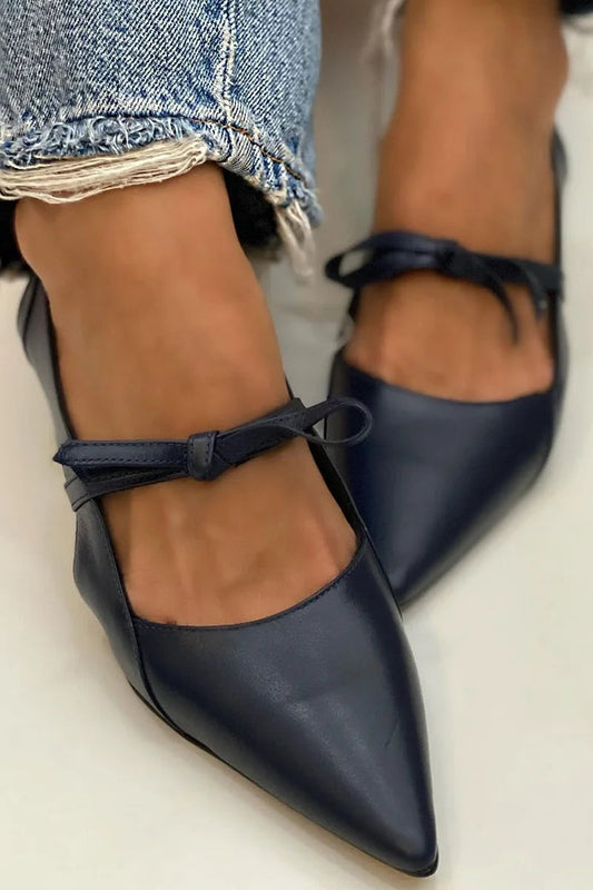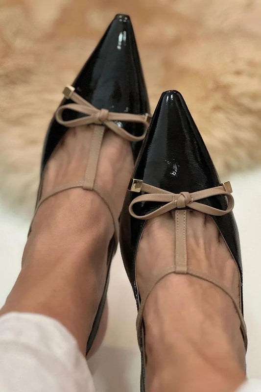 Tacchi a spillo neri con cinturino a punta e fiocco colorblock