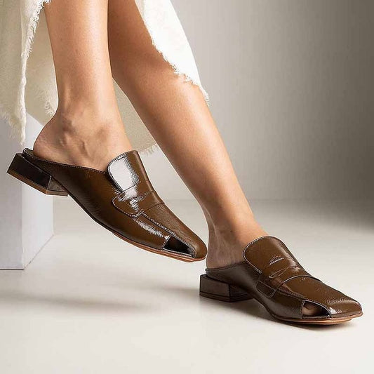 Mules marroni con punta quadrata e ritagli in tinta unita patchwork [Pre-ordine]