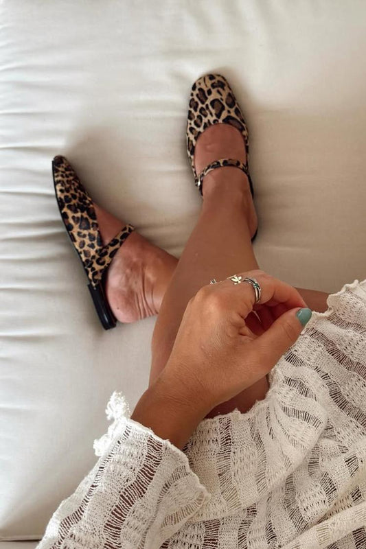 Mules con punta quadrata, cinturino sul collo del piede con stampa leopardata e fibbia [Pre-ordine]