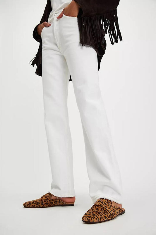 Mules marrone chiaro con punta quadrata e motivo patchwork leopardato [Pre-ordine]