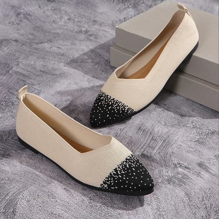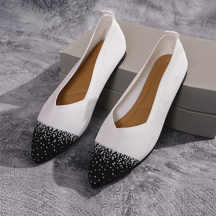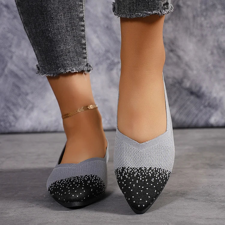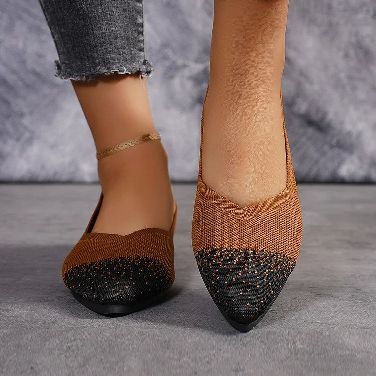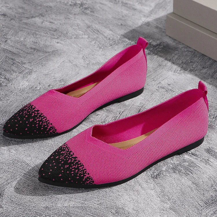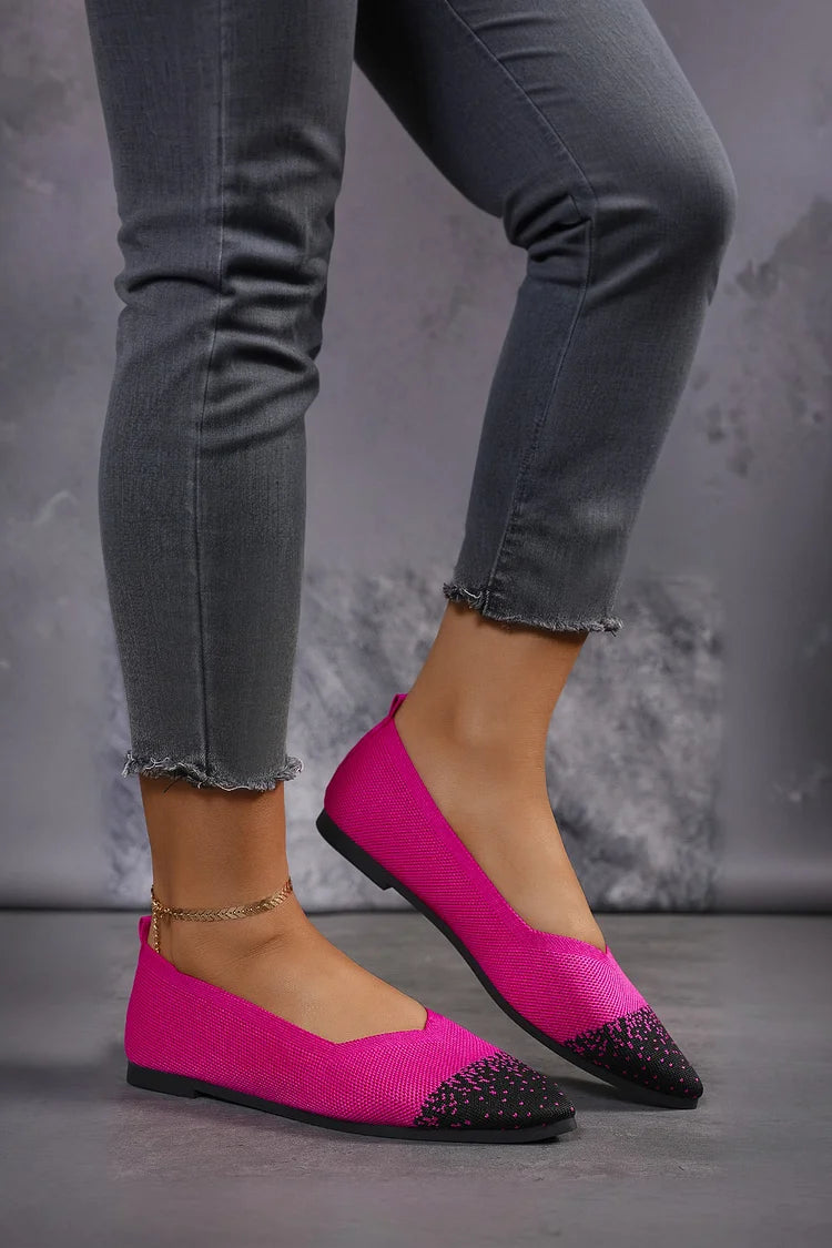 Ballerine traspiranti con punta affilata e lavorazione a maglia colorblock