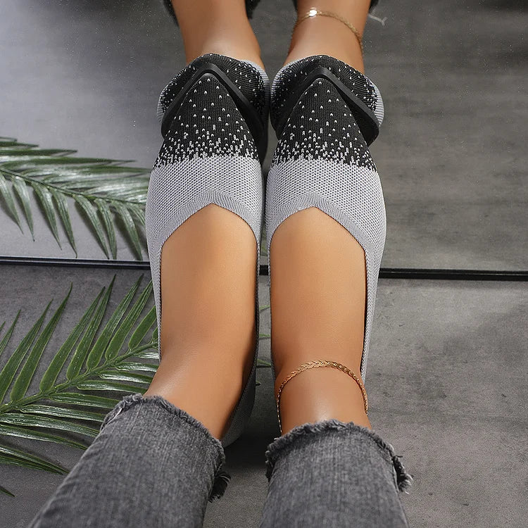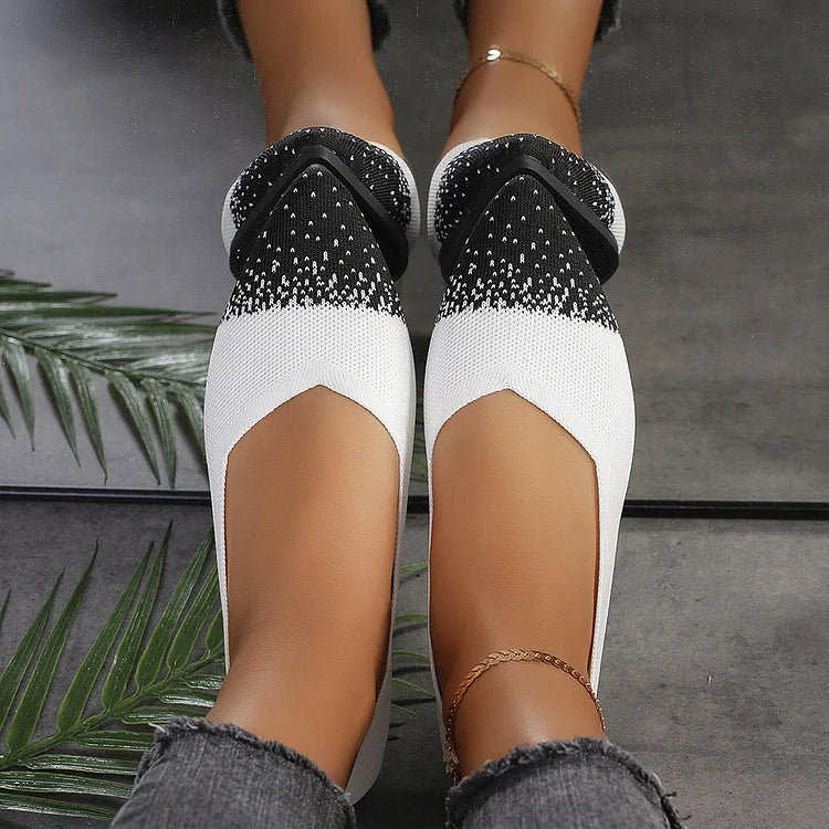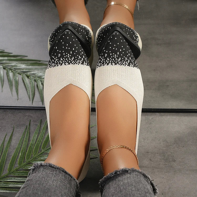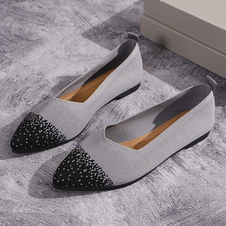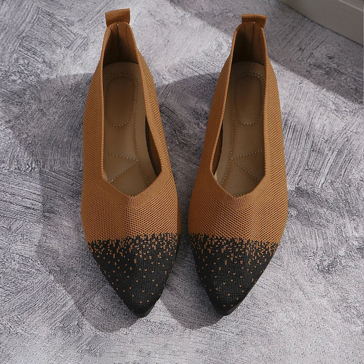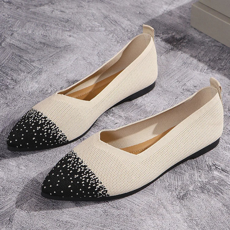 Ballerine traspiranti con punta affilata e lavorazione a maglia colorblock