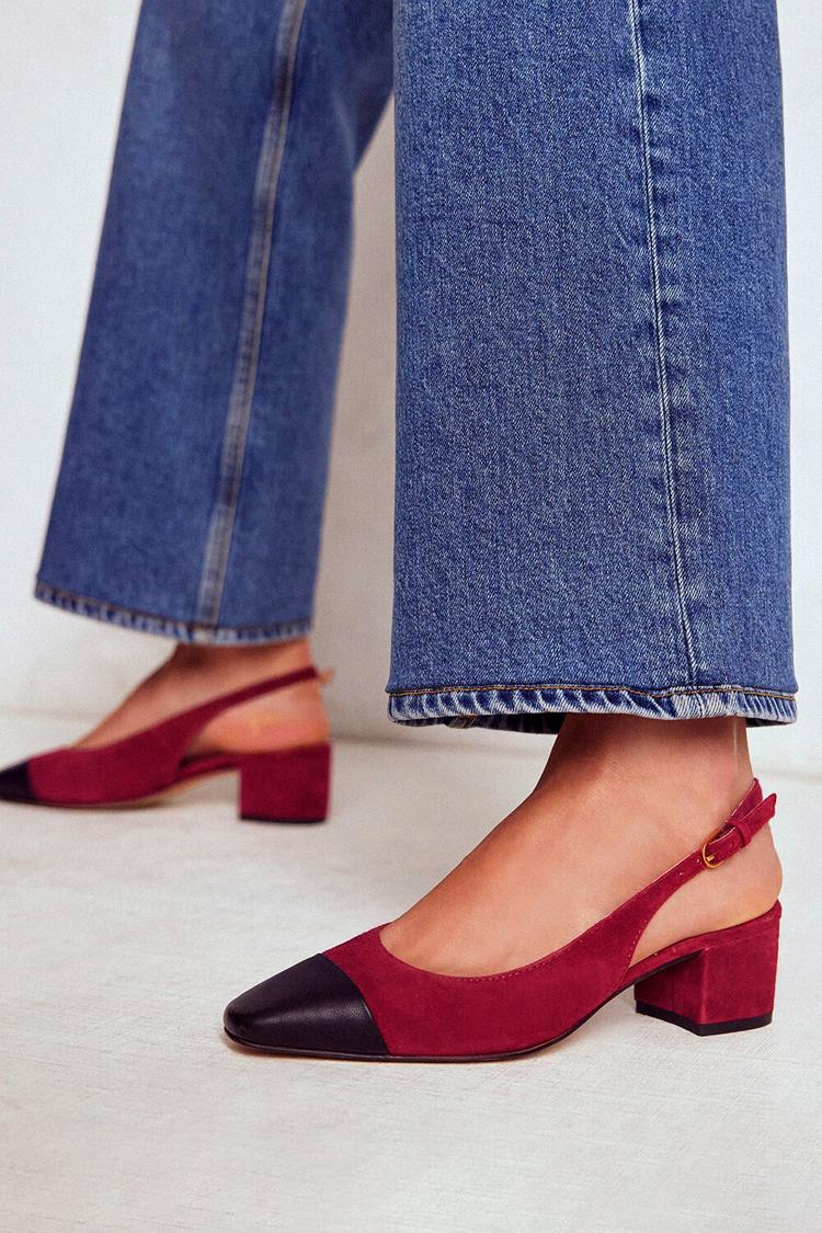 Sandali con tacco largo color block bordeaux e punta quadrata [Pre-ordine]