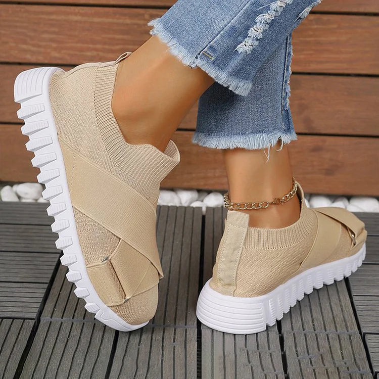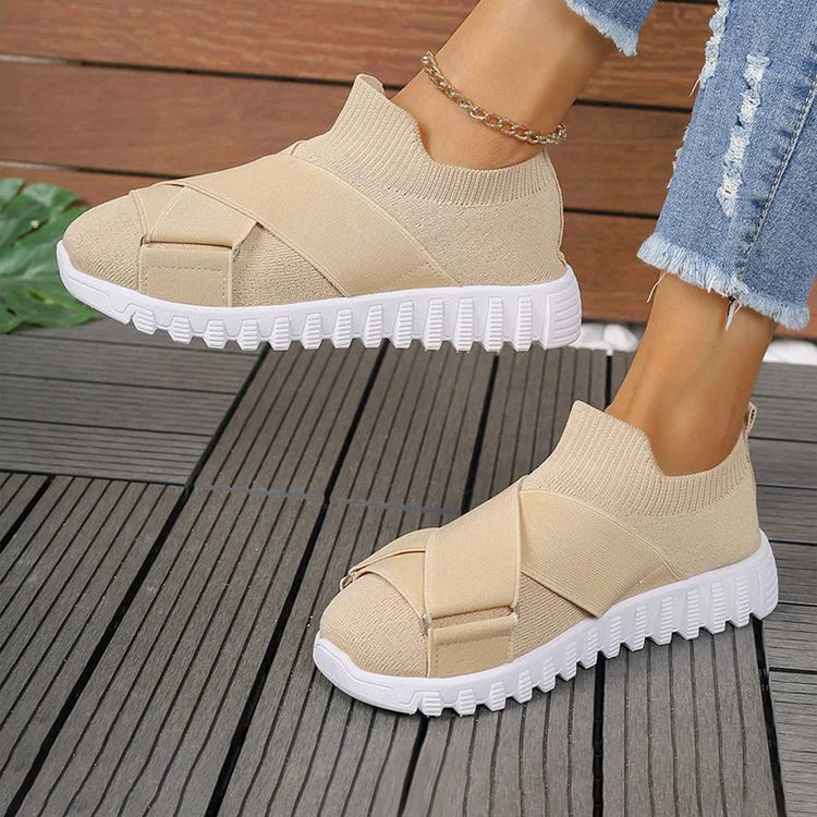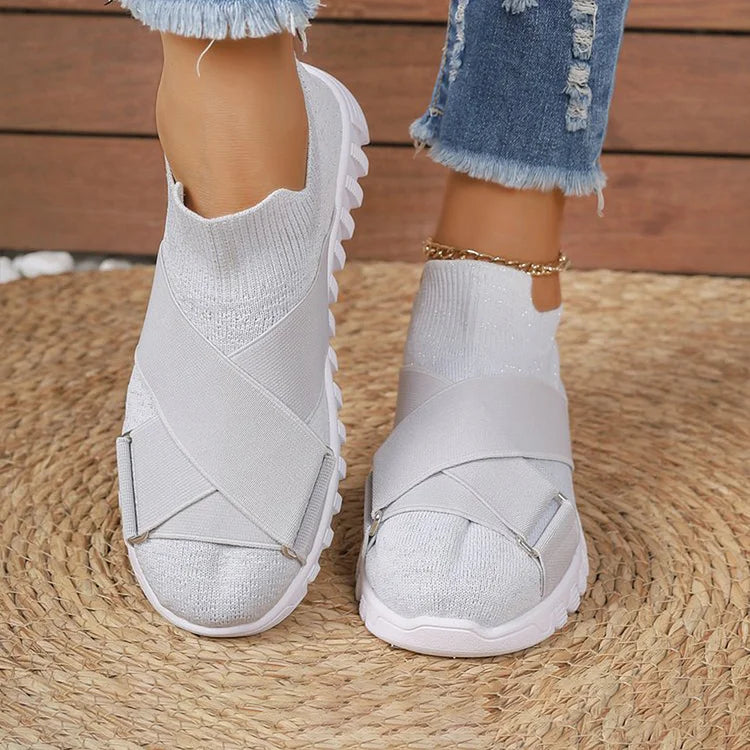 Sneakers casual slip-on con punta rotonda e patchwork con cinturini incrociati
