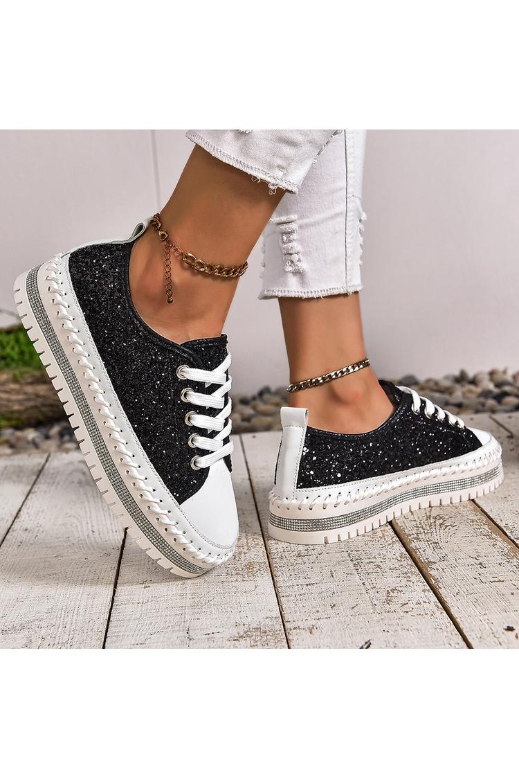 Sneakers casual con lacci e punta tonda con patchwork scintillante e dettagli cuciti