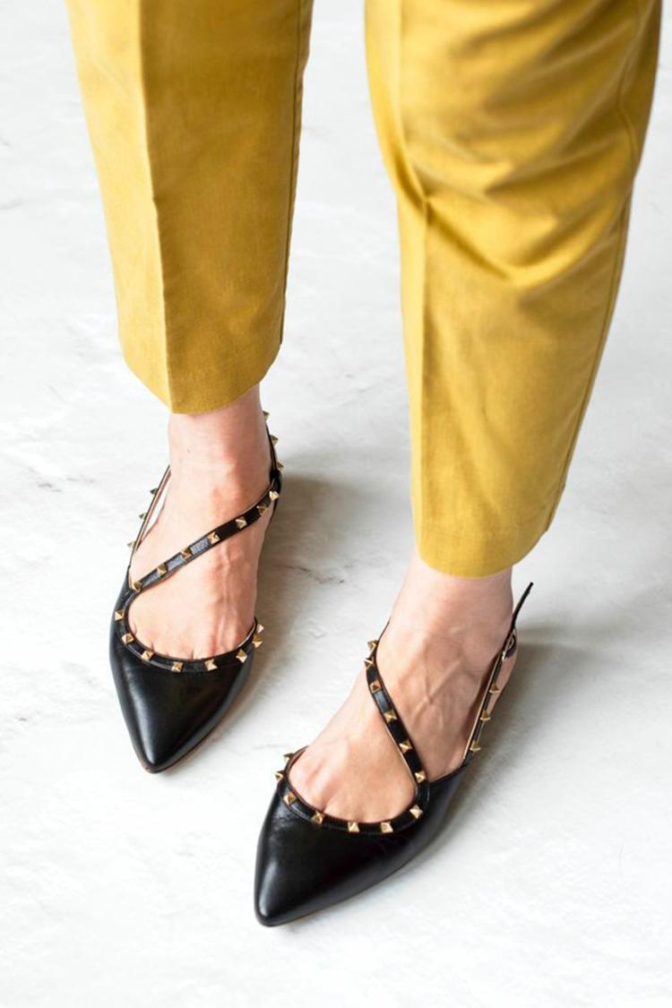 Scarpe basse nere con punta affilata, fibbia con cinturino irregolare e rivetti in metallo [Pre-ordine]