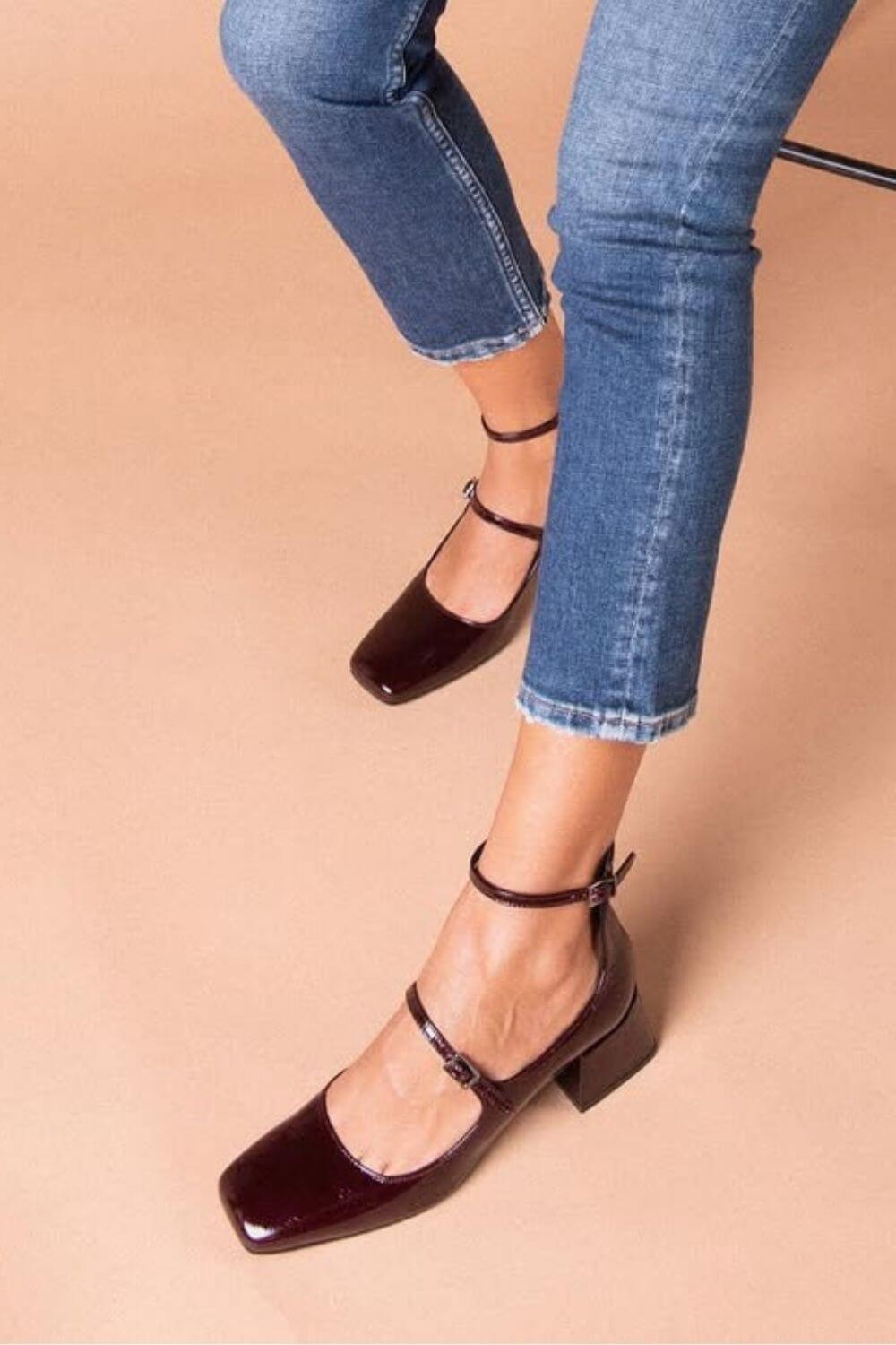Scarpe con punta tonda e tacco a blocco con doppio cinturino in vernice [Pre-ordine]