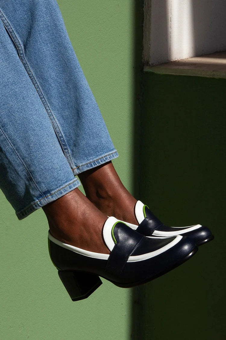 Tacco spesso nero con punta tonda e colori a contrasto [Pre-ordine]