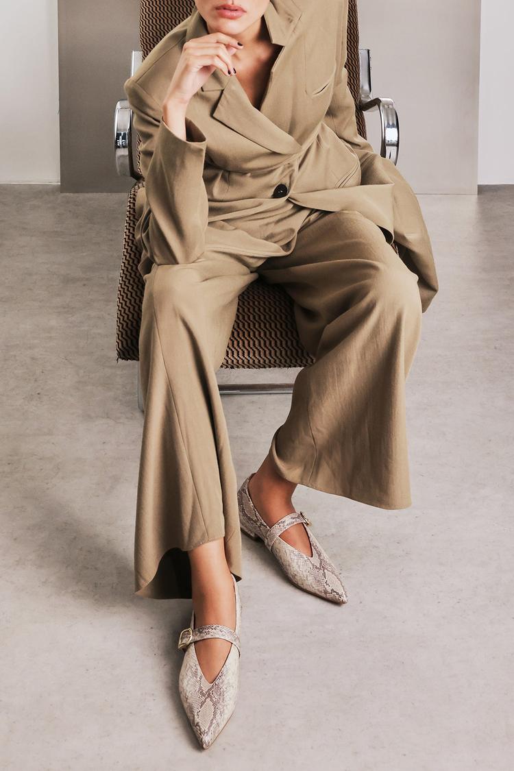 Scarpe basse grigie con punta affilata, cinturino sul collo del piede con stampa serpente [Pre-ordine]