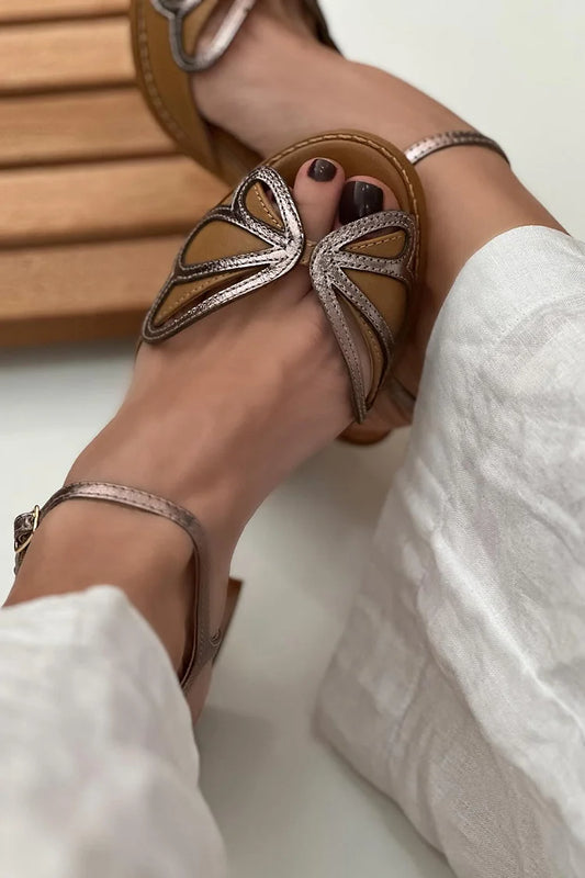 Sandali con cucitura infradito con fibbia e cinturino sul retro con stampa a farfalla