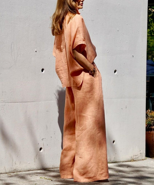 Pantaloncini casual con maniche a lanterna Set di due pezzi in cotone e lino