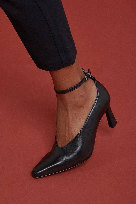 Scarpe con tacco a spillo nere, cinturino alla caviglia e fibbia [Pre-ordine]