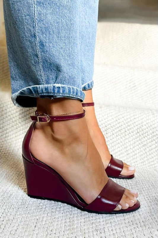 Zeppe bordeaux con punta tonda, cinturino alla caviglia e fibbia [Pre-ordine]