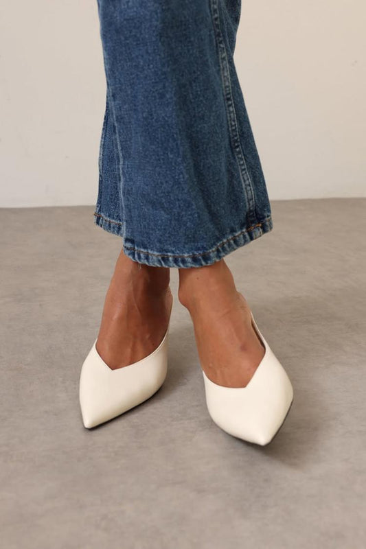 Scarpe con tacco a zeppa casual color avorio, a punta e tinta unita [Pre-ordine]