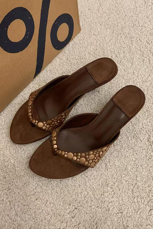 Infradito con tacco a gattino e decorazioni a rivetto retrò - Marrone