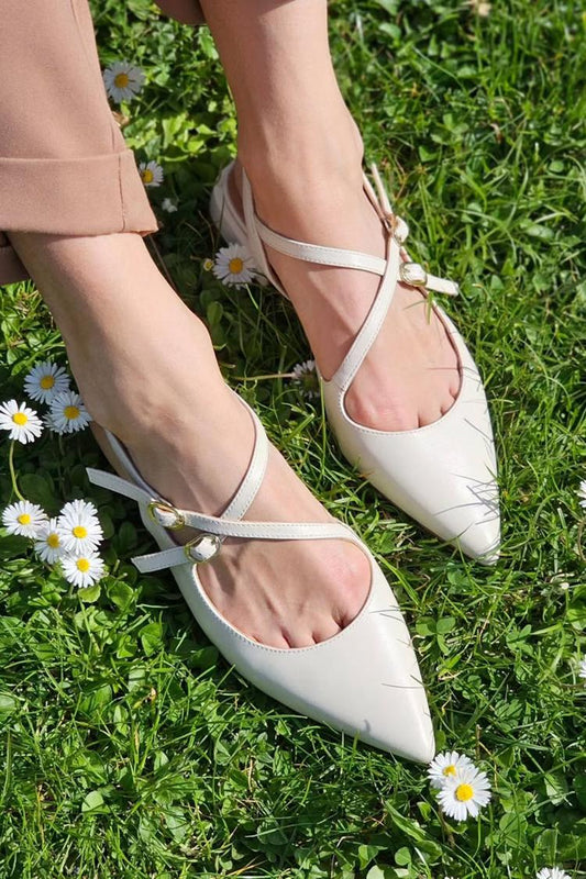 Scarpe con cinturino incrociato, punta affilata, tacco basso bianco [Pre-ordine]