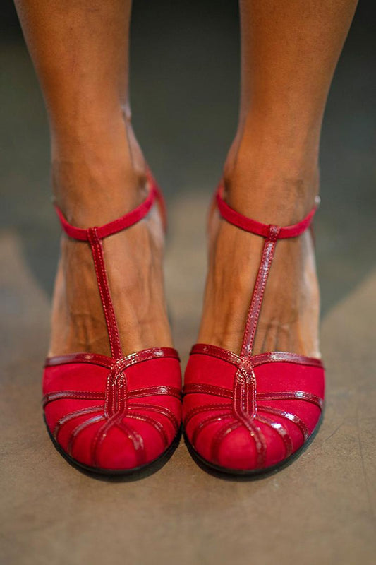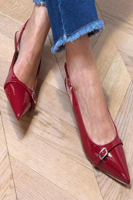 Zeppe rosse con cinturino alla caviglia e fibbia a punta [Pre-ordine]