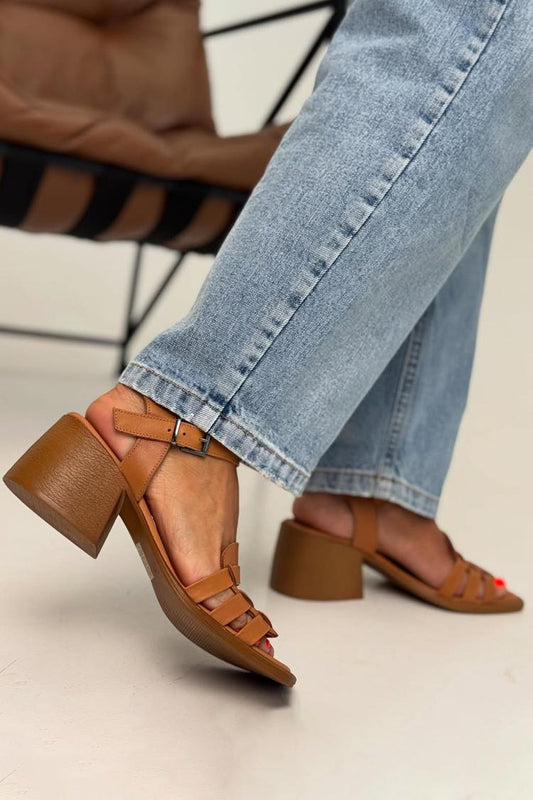 Scarpe con tacco a spillo marrone chiaro con cinturino annodato e punta aperta [Pre-ordine]