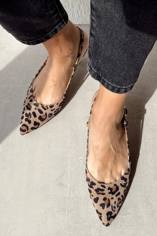 Sandali con cinturino posteriore colorblock, punta affilata, tacco basso patchwork leopardato [Pre-ordine]