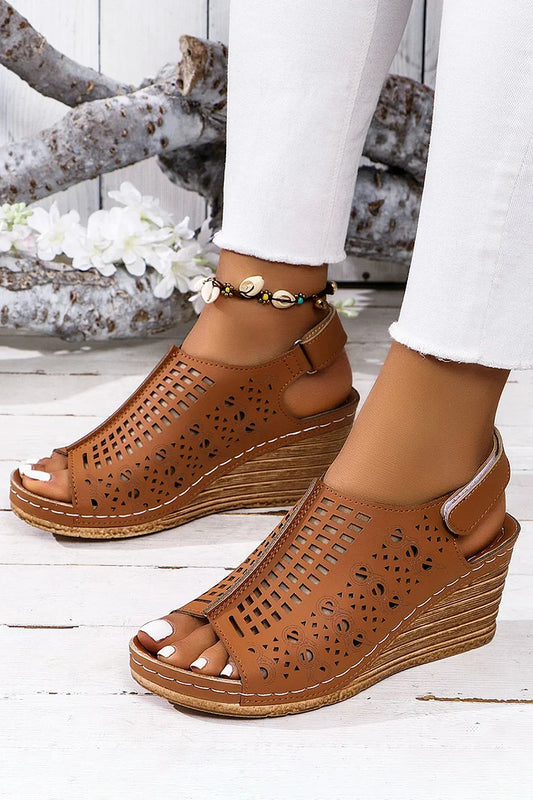Sandali con zeppa casual con punta aperta, rivetti in metallo e decorazioni ritagliate