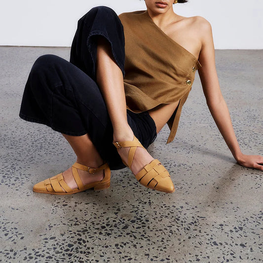Sandali gialli con punta affilata, cinturino incrociato e fibbia intrecciata [Pre-ordine]