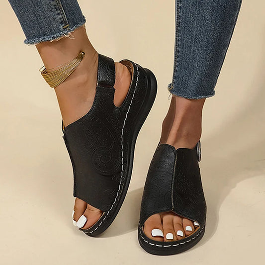 Sandali con tacco a zeppa e punta aperta con cinturino posteriore di alta qualità