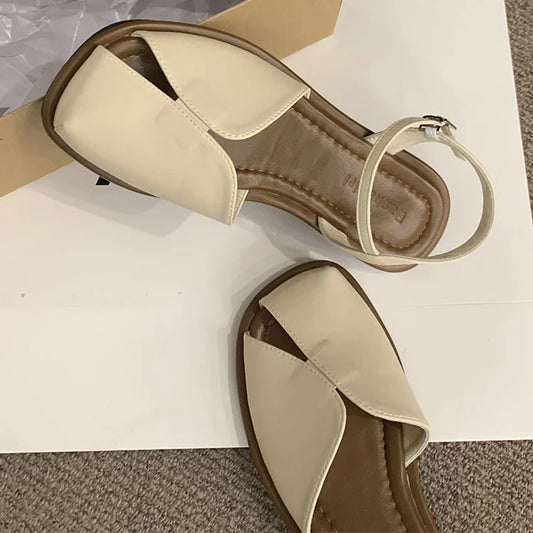 Sandali casual glamour con punta quadrata, cinturino semplice e fibbia alla caviglia