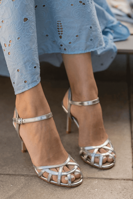 Sandali con cinturino alla caviglia traforato e tacco spesso