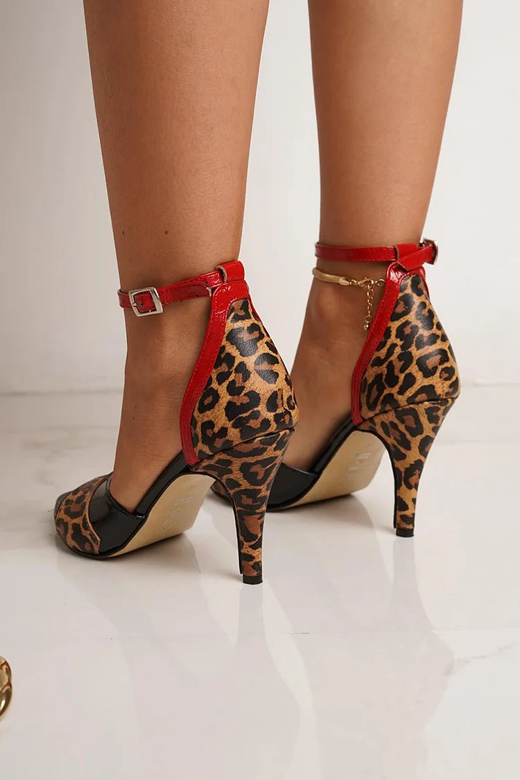 Tacco a spillo con fibbia e cinturino alla caviglia, stampa leopardata, patchwork [Pre-ordine]