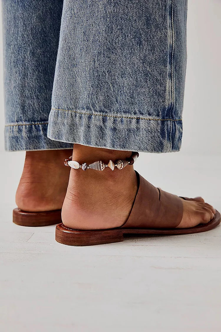 Cinturino alla caviglia con fibbia, stampa leopardata, punta affilata, tacco basso beige