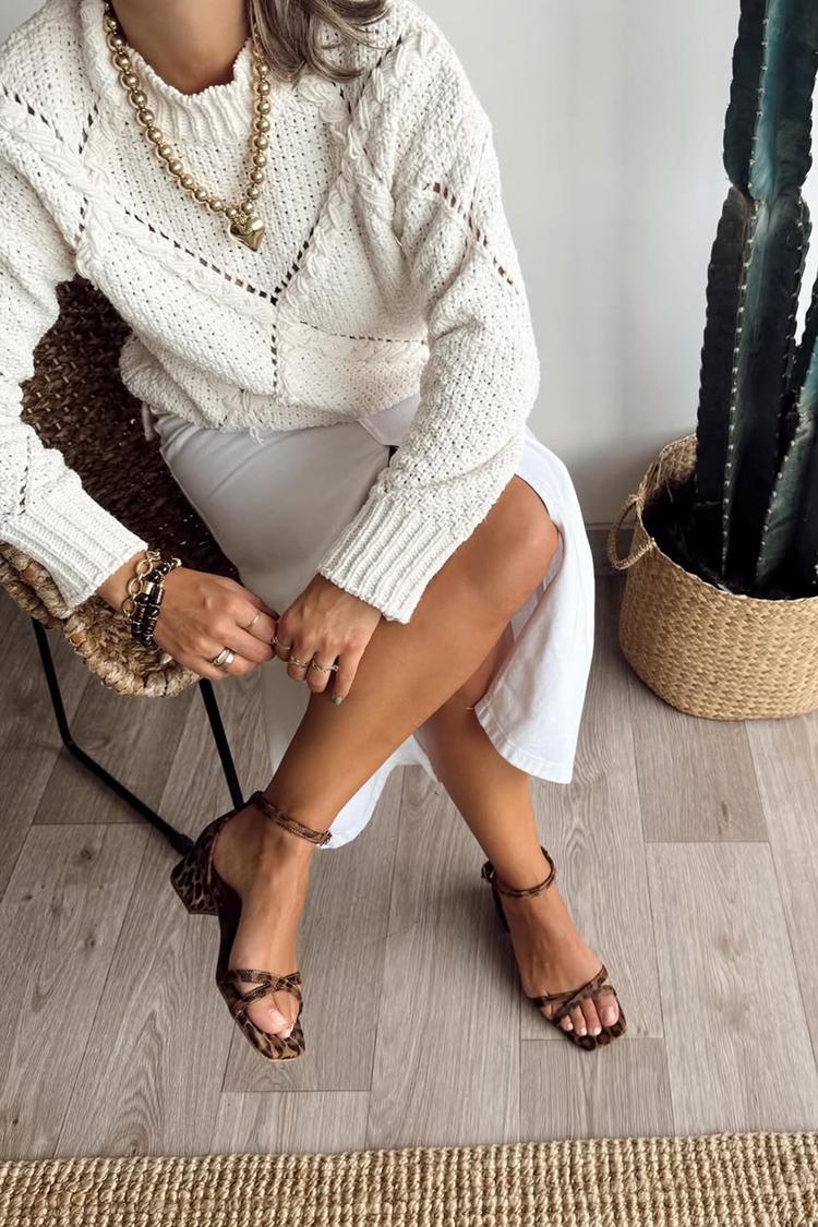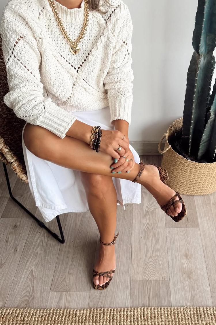 Scarpe con tacco grosso marroni, punta quadrata, cinturino alla caviglia con fibbia e stampa leopardata [Pre-ordine]