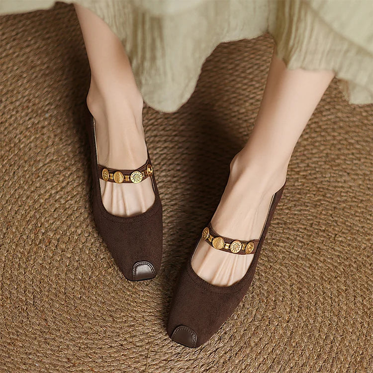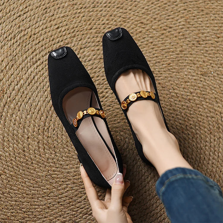 Ballerine con punta quadrata morbida e fibbia quadrata in velluto