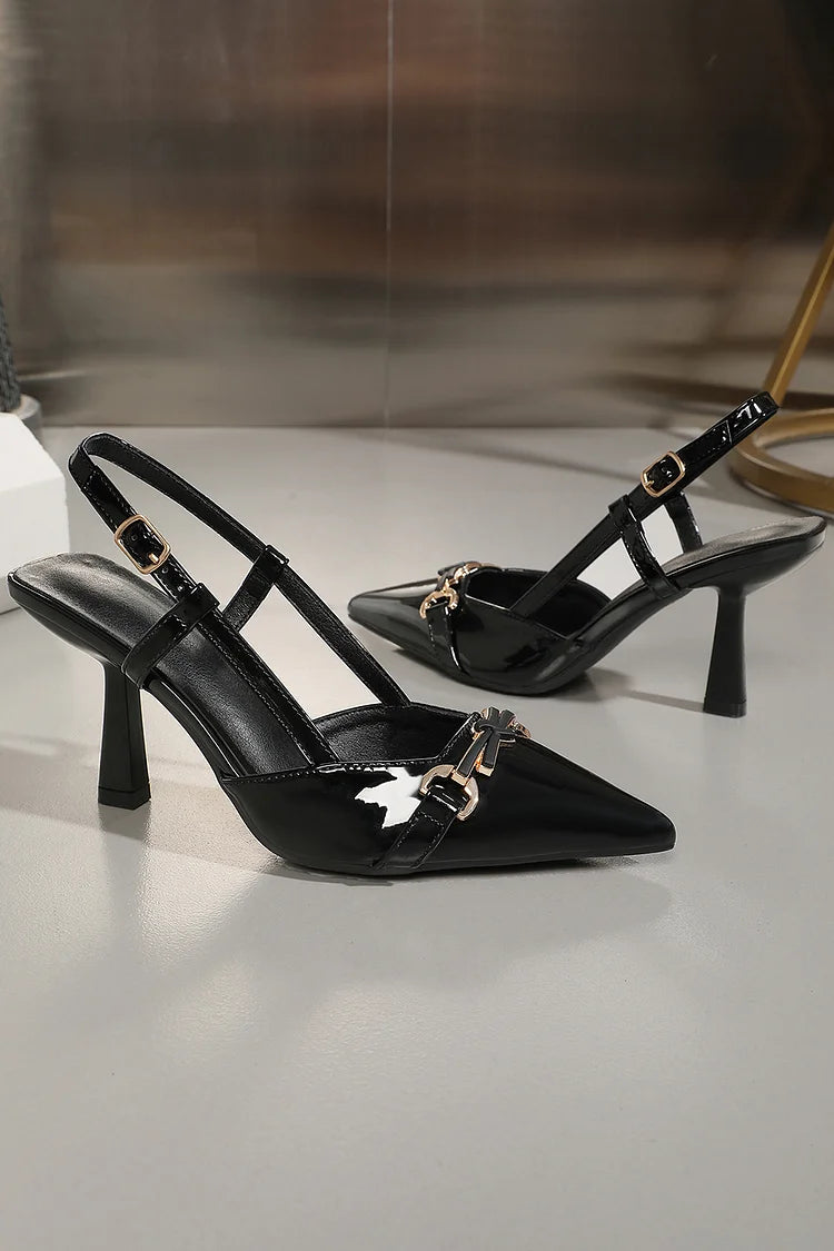 Tacco a spillo con cinturino alla caviglia e fibbia con decorazione in metallo