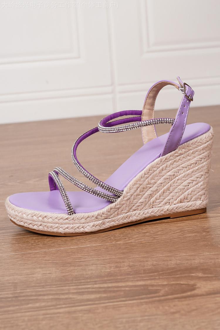 Zeppa con cinturino alla caviglia con fibbia e punta tonda decorata con strass