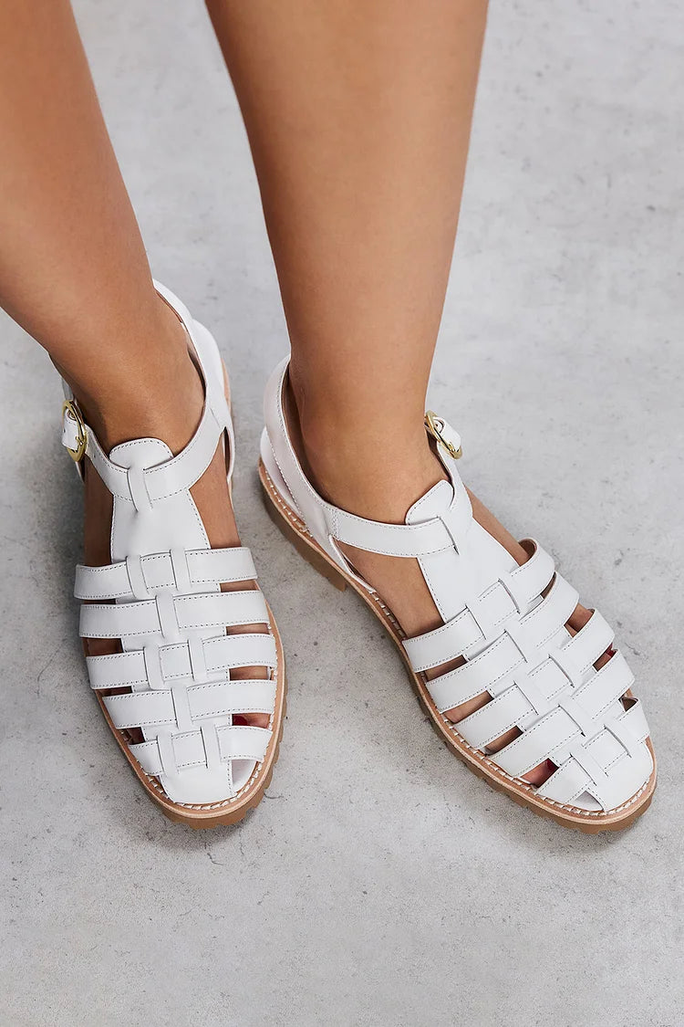 Sandali bianchi con punta tonda e tinta unita, intrecciati e traforati [Pre-ordine]