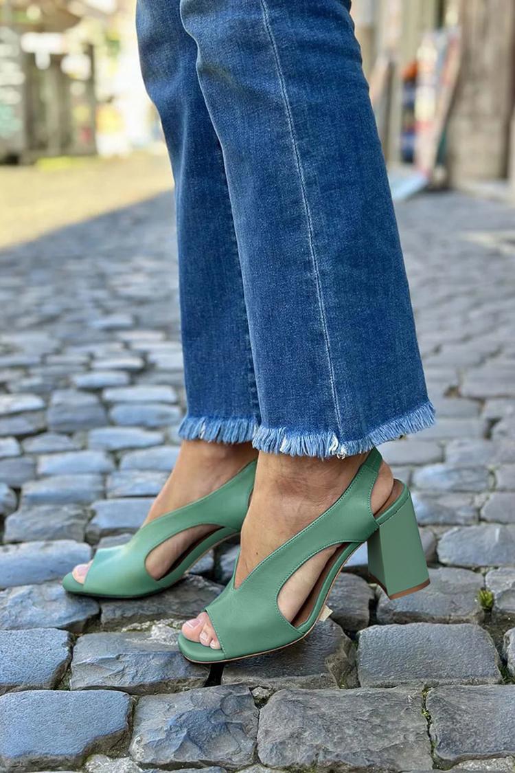 Scarpe con tacco grosso verdi a punta aperta e intagliate in tinta unita [Pre-ordine]