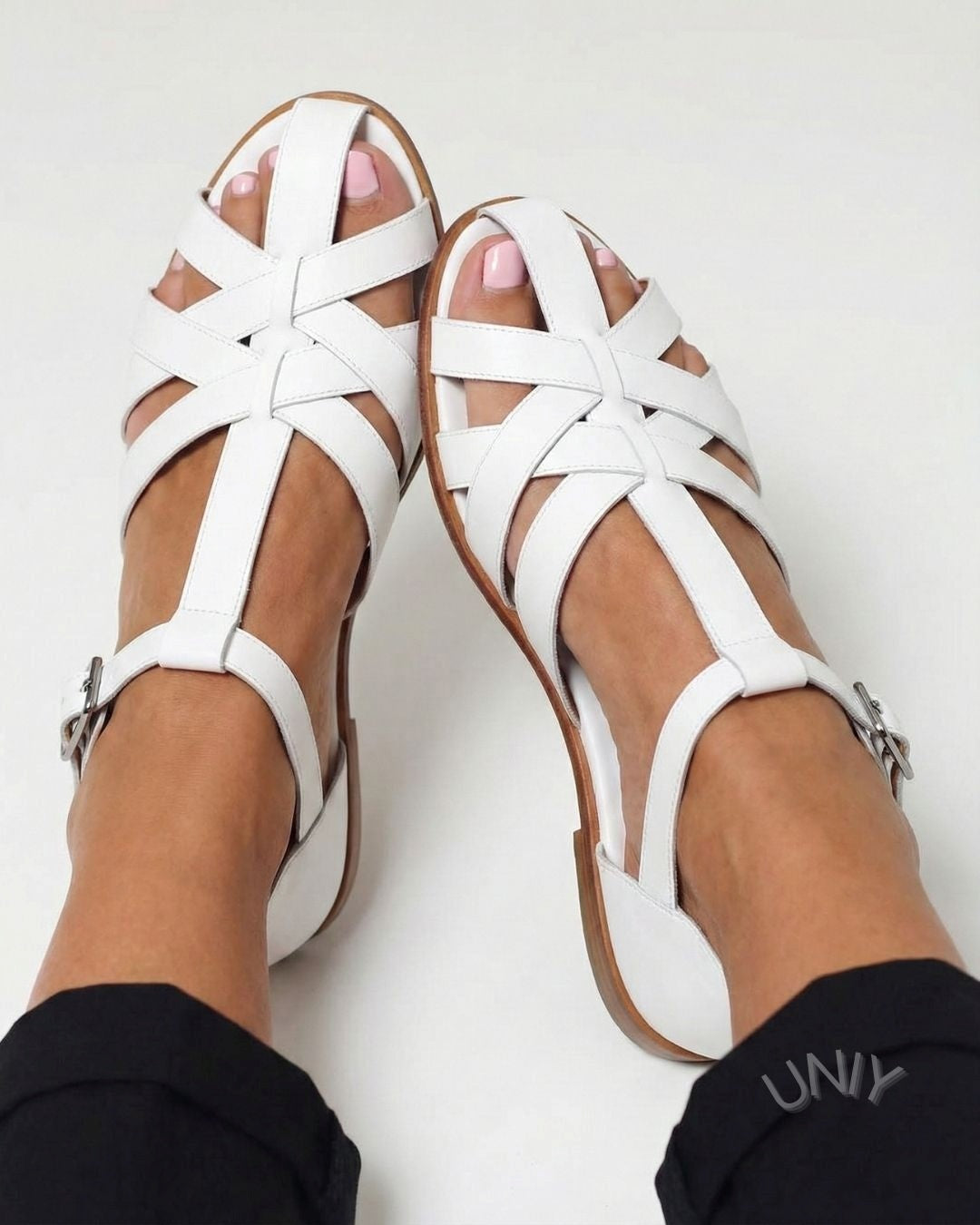 Veelzijdige witte geweven T-stang open sandaal voor dagelijks gebruik [Vooraf bestellen]