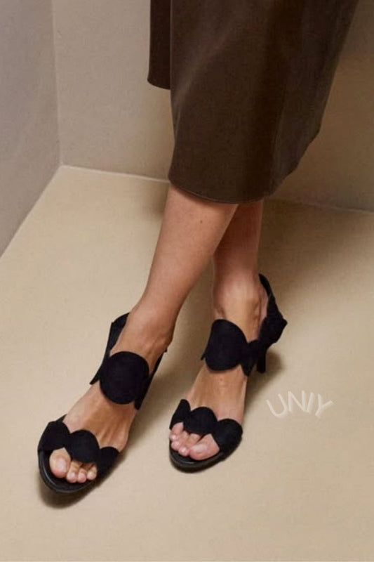 Chique zwarte sandalen met geschulpte rand, open teen en kittenhak [Pre Order]