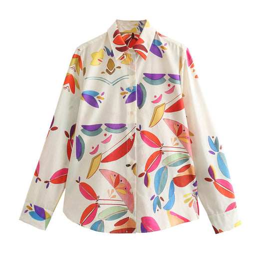Abstrakcyjna koszula z nadrukiem, spodnie proste ze sznurowaniem, zestaw dwuczęściowy