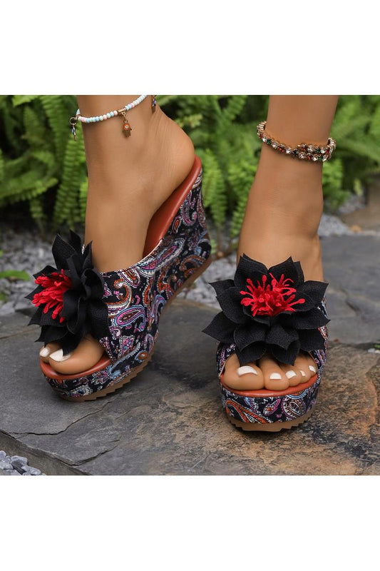 3D Kwiatowa Dekoracja Paisley Wzór Sandały z Odkrytymi Palcami na Koturnie Casual