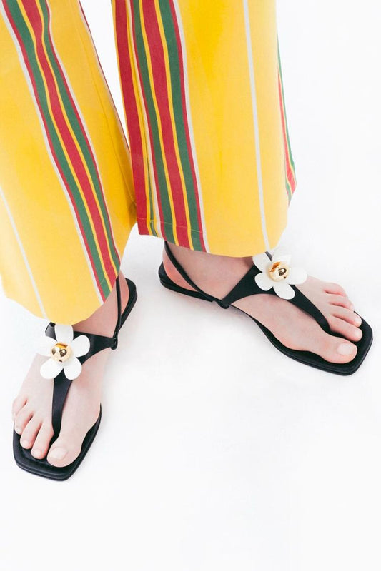 3D Kwiat Dekor Kwadratowy Palec Codzienne Plażowe Czarne Sandały [Przedsprzedaż]